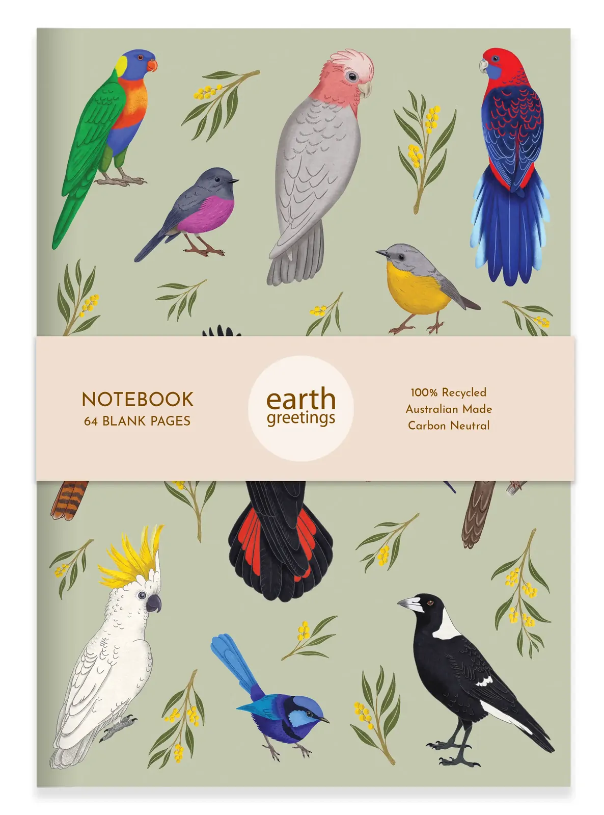 100% recycled, Earth friendly blank notebook featuring Australian native bird artwork by Australian artist Negin Maddock.