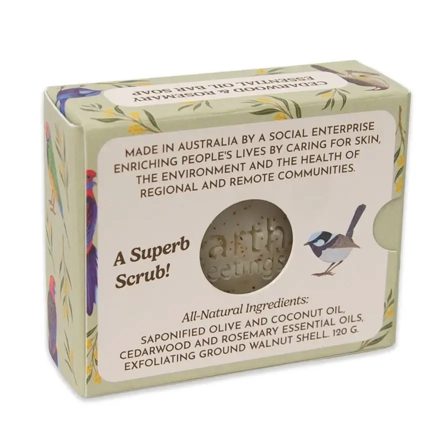 Our soaps are hand made in small batches by an Australian social enterprise enriching people's lives by caring for skin, the environment, and the health of regional and remote communities. Beautifully packaged in a plastic-free, recyclable box for gifting, birthdays, and care hampers (or a little relaxing treat just for you!)