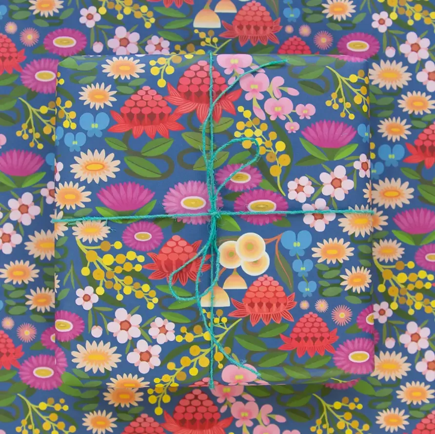 Earth friendly wrapping paper featuring Australian native floral illustrations by Australian artist Claire Ishino.