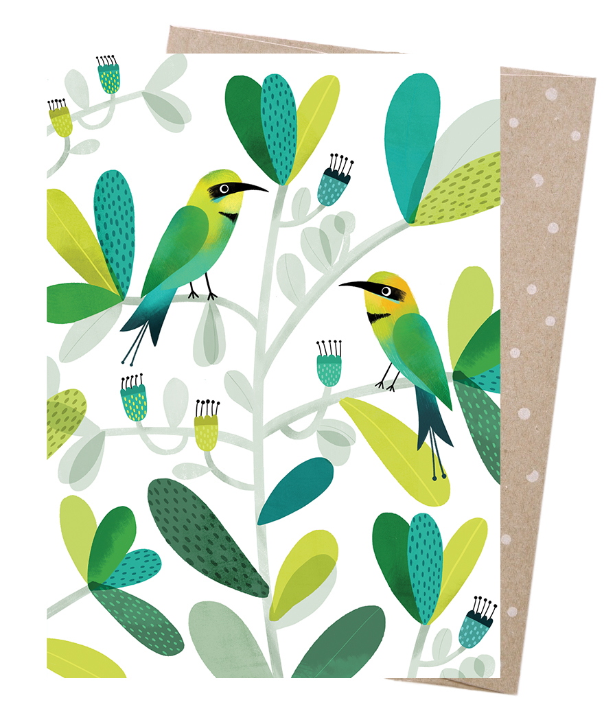 Featuring Australian native Rainbow Bee-eater birds by artist Sarah Allen.