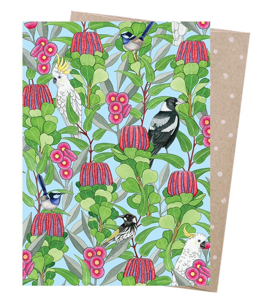 Printed in Australia with vegetable based ink and made from 100% post-consumer waste. Comes with a 100% post-consumer recycled envelope. This card is blank inside for your personal message. 100% carbon neutral and supplied plastic wrap free.