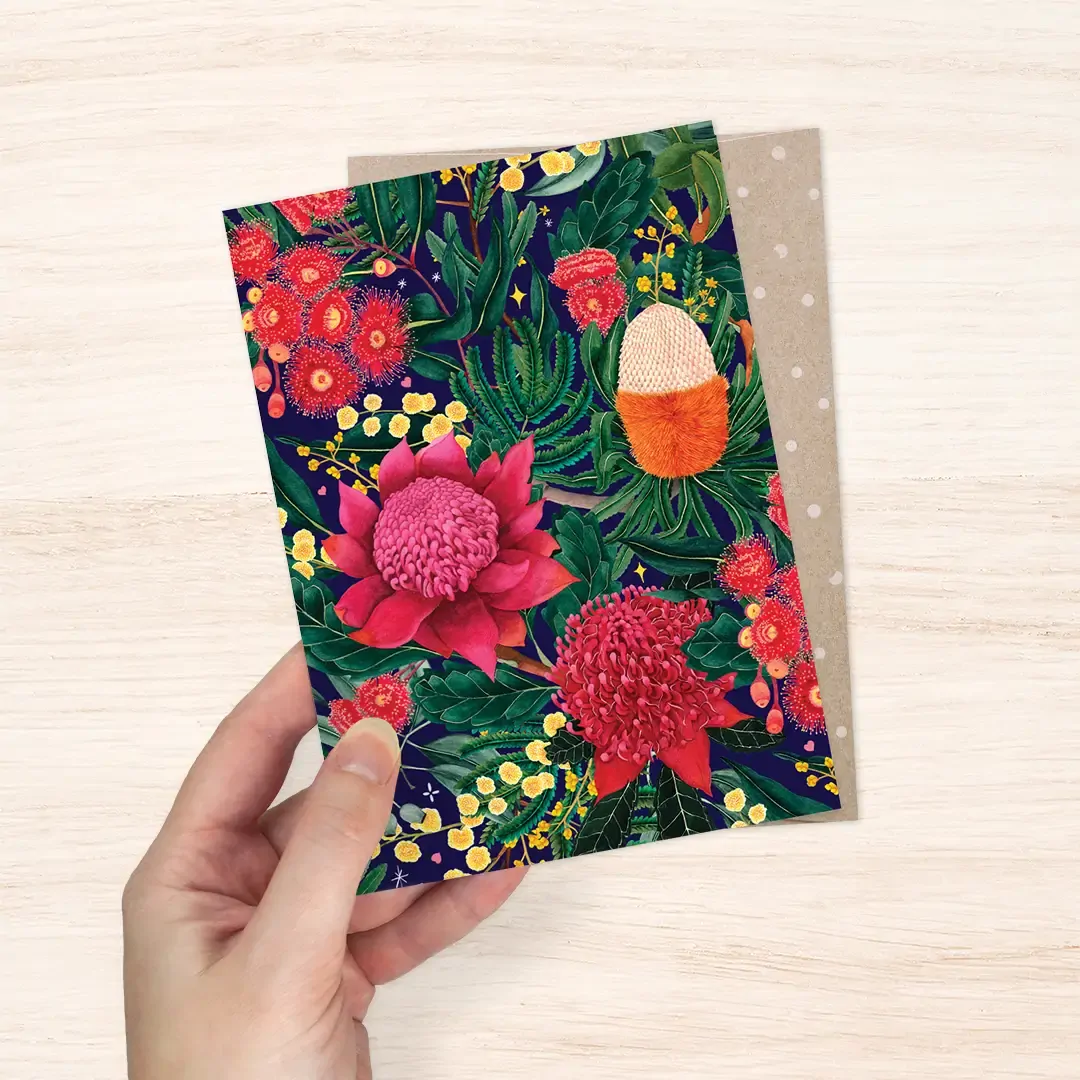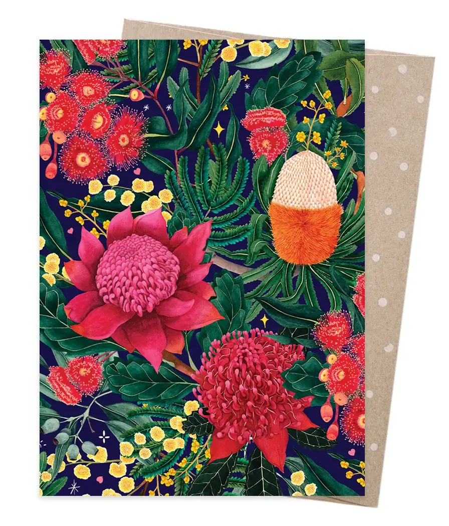 Featuring a vibrant Australian native botanical illustration by Neha Gupte (The Blck Pen).