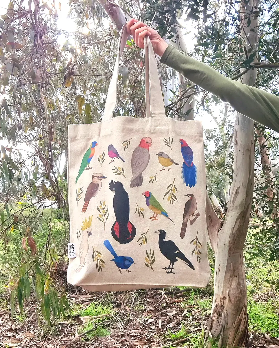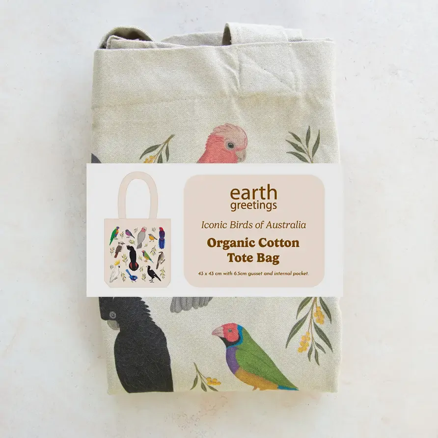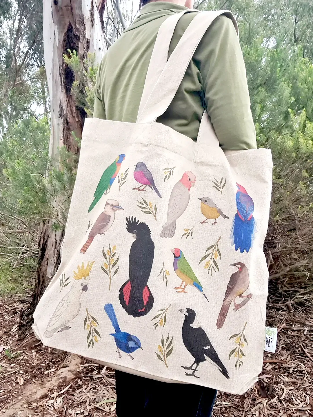Bird nerds rejoice! Carry your favourite feathered friends everywhere you go with this iconic Australian birds tote bag. It's got nice long handles that fit comfortably over the shoulder, a gusset for extra roomyness and pocket inside to keep your phone and keys safe. Ethically made from sturdy yet soft, Australian Certified Organic mid-weight cotton canvas, and printed in Australia using water-based ink.