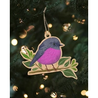 Wooden Decoration - Pink Robin